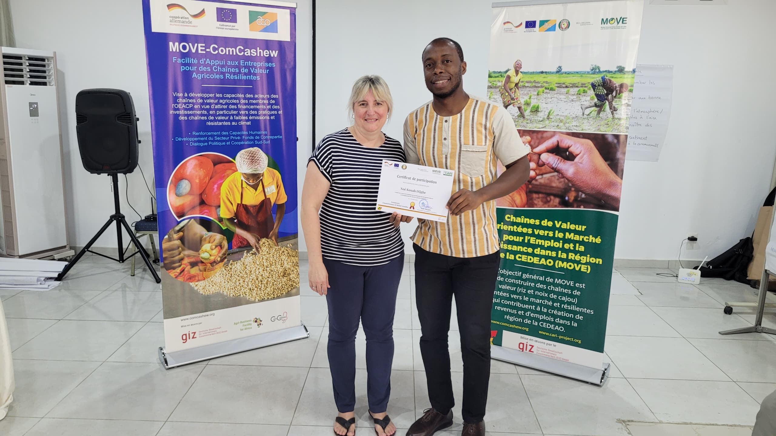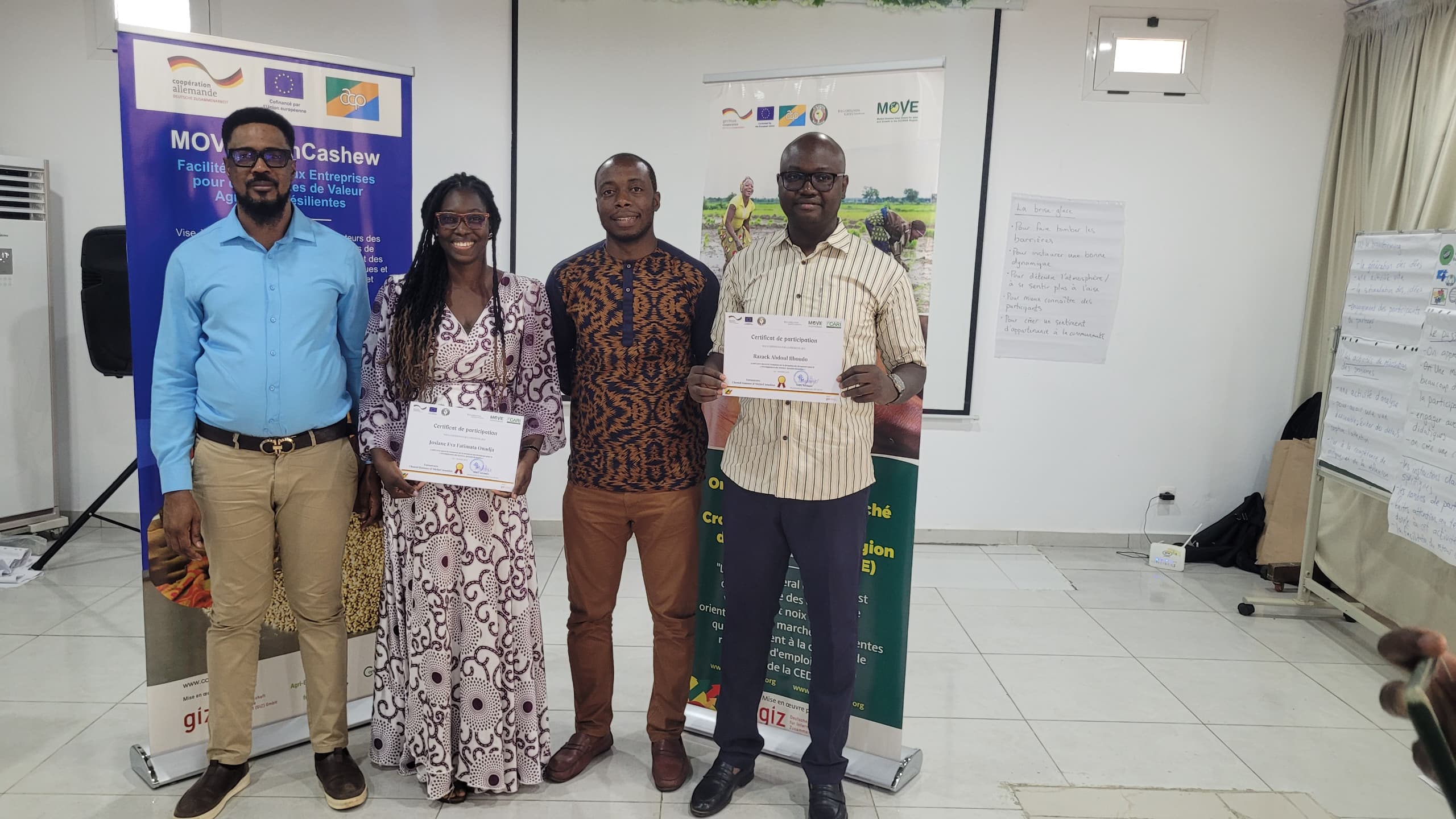 Participants came from Côte d'Ivoire, Burkina Faso and Senegal, and were trained by experts from Sense Consulting in South Africa. The training was hosted at Hotel Djigui in Abidjan, with all logistics—travel, accommodation and materials—fully covered by the GIZ/MOVE project.